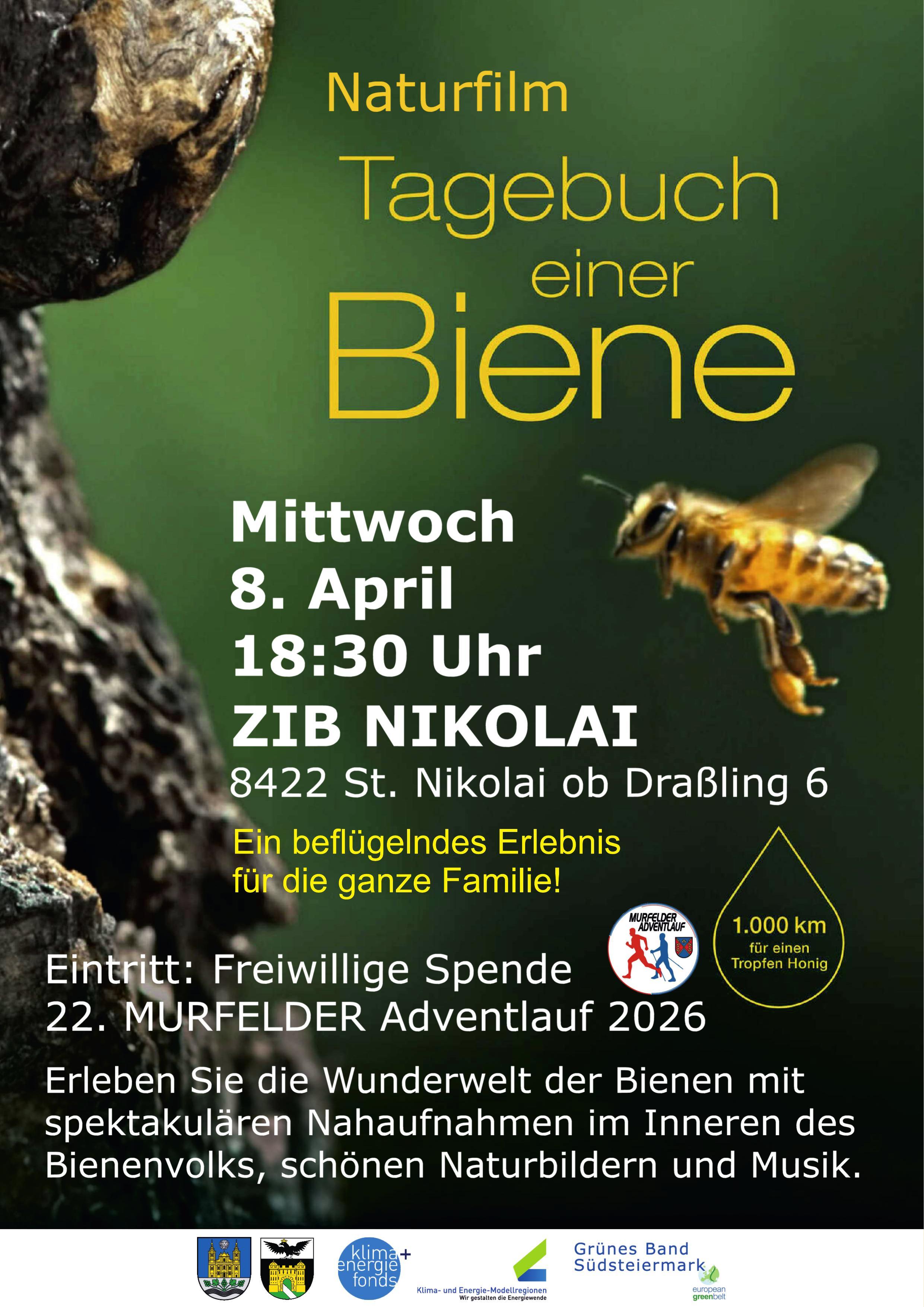 Am Mittwoch, 8. April 2026 gibt es einen besonderen Kinoabend im ZIB St. Nikolai. Ab 18:30 Uhr zeigt der faszinierende Naturfilm „Tagebuch einer Biene“ – ein beflügelndes Erlebnis, das die Wunderwelt der Bienen aus der Perspektive der Insekten selbst zeigt.